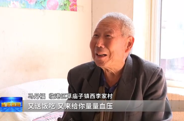 临港区草庙子镇西李家村马丹福说,又送饭吃,又来给量量血压,过节又是月饼,又是粽子,又是鸡蛋啥都有,挺温暖的,挺好的。
