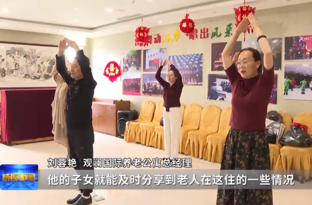 观澜国际养老公寓总经理刘蓉艳说,下一步准备整体提升一下,做智慧养老,身体检查的指标数据都输入到智慧化平台里面,子女就能及时分享到老人在这住的一些情况。(全媒体新闻中心记者 孟晓燕 刘一博)