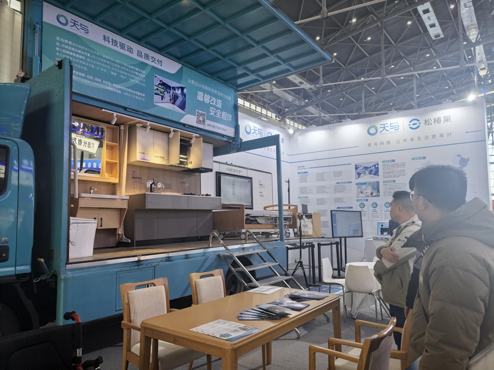 在展会现场,上海天与智慧养老服务有限公司把流动展车开进了会场。“这辆展车去年四月建成,在江苏跑过不少社区,这是第一次把它开到安徽来。”上海天与智慧养老服务有限公司副总裁徐卓元告诉记者。