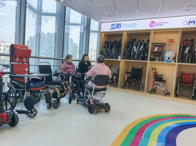 家住南京赛虹桥街道的兰奶奶听社区介绍,买拐杖、租轮椅,甚至看小毛小病,都能在新运营的雨花台区(玻纤院)适老化生活体验中心解决,她决定去看看究竟。